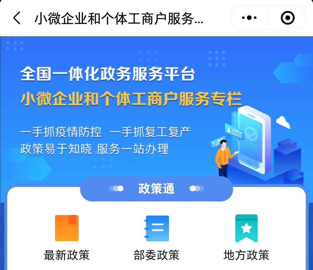 為推動解決疫情期間復工復產(chǎn)難題,國家政務服務平臺推出“小微企業(yè)和個體工商戶服務專欄”。