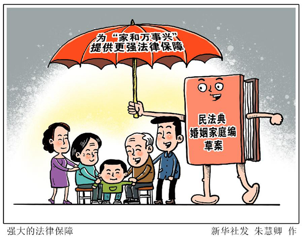 常言道:“家和萬事興”。個(gè)人婚姻家庭關(guān)系的和睦與否,與全社會(huì)的和諧穩(wěn)定息息相關(guān)。從注重“家風(fēng)”建設(shè),到加大權(quán)益保護(hù)力度,即將提請(qǐng)全國人代會(huì)審議的民法典草案,是我國婚姻家庭立法進(jìn)程中的重要里程碑。