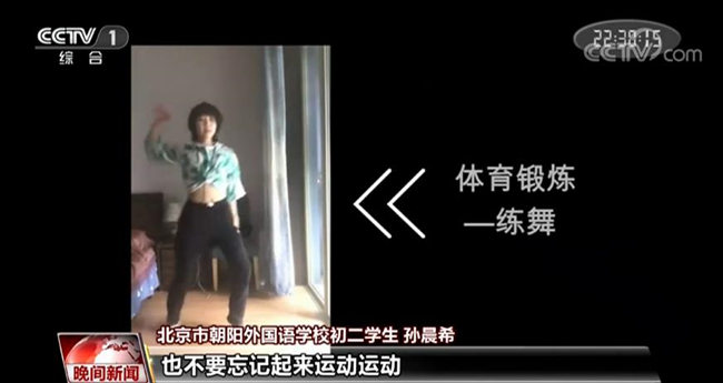 北京市朝陽(yáng)外國(guó)語(yǔ)學(xué)校初二學(xué)生 孫晨希:在學(xué)習(xí)之余,也不要忘記起來(lái)運(yùn)動(dòng)運(yùn)動(dòng),接下來(lái)就是我們的練舞時(shí)間啦。