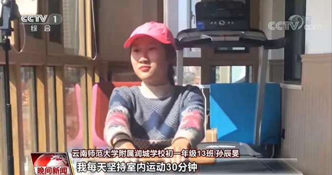 云南師范大學(xué)附屬潤(rùn)城學(xué)校初一年級(jí)13班 孫辰旻:在爸爸的陪伴下,我每天堅(jiān)持室內(nèi)運(yùn)動(dòng)30分鐘,室外運(yùn)動(dòng)1小時(shí)。體育運(yùn)動(dòng)不僅能提升我的身體素質(zhì),還能不斷磨練我的意志,增強(qiáng)我的自信。