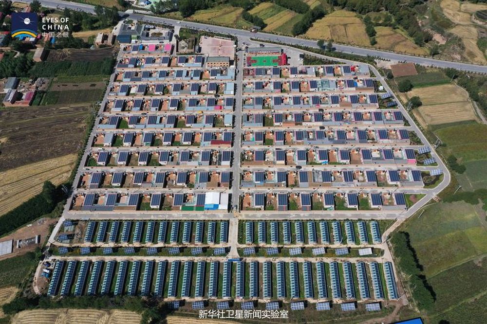 ↑班彥新村村民家的屋頂上、豬圈邊“種”滿了光伏板。新華社記者 吳剛 攝