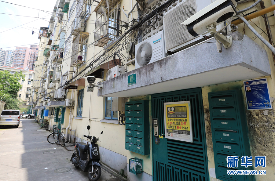 這是上海江蘇路街道一居民樓單元門(mén)上安裝的與上海江蘇路街道城運(yùn)中心聯(lián)網(wǎng)的攝像設(shè)備(6月8日攝)。新華社記者 方喆攝