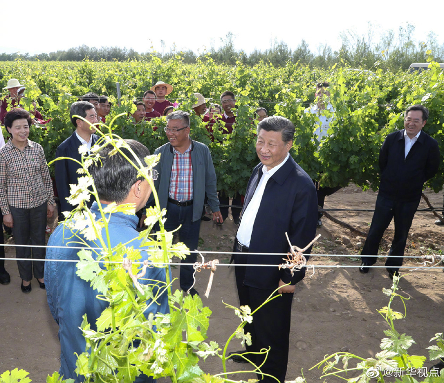習(xí)近平總書記9日在銀川考察調(diào)研。他先后來到賀蘭縣稻漁空間鄉(xiāng)村生態(tài)觀光園、賀蘭山東麓葡萄種植園,了解當(dāng)?shù)匕l(fā)展特色農(nóng)業(yè)產(chǎn)業(yè)、加強(qiáng)賀蘭山生態(tài)保護(hù)等情況。(文字記者:張曉松、朱基釵 攝影記者:鞠鵬、謝環(huán)馳、王曄、燕雁)