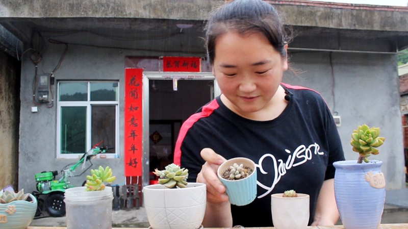 在尋烏縣丹溪鄉(xiāng)岑峰村,張荷花家讓記者眼前一亮——小院就在車來車往的縣道旁,本該積灰的地方卻沒啥塵土。房子雖是農(nóng)村少見的平房,但屋內(nèi)收拾得井井有條。低矮的院墻上,擺放著長勢(shì)喜人的多肉、蟹爪蓮、長壽花、玫瑰等植物,透露出主人的生活情趣。