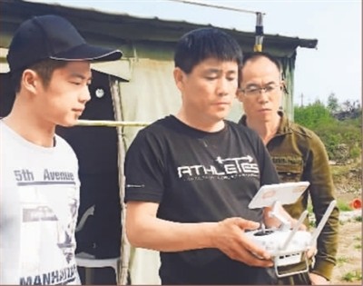 張海軍(中)在學(xué)習(xí)無人機(jī)駕駛技術(shù)??仔廊粩z