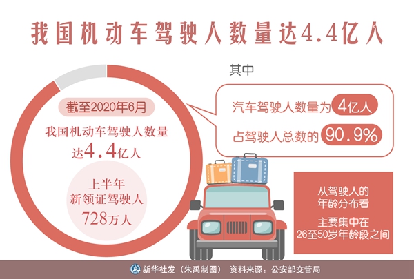 新華社北京7月18日電(記者劉奕湛)公安部交管局日前發(fā)布數(shù)據(jù)顯示,截至2020年6月,我國(guó)機(jī)動(dòng)車駕駛?cè)藬?shù)量達(dá)4.4億人,上半年新領(lǐng)證駕駛?cè)?28萬(wàn)人。