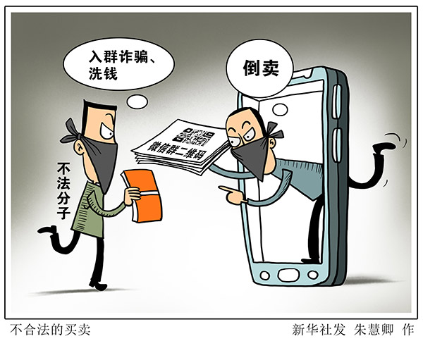 “新華視點”記者調(diào)查發(fā)現(xiàn),微信群的二維碼在網(wǎng)絡上被倒賣,一些不法分子借此實施詐騙或洗錢。