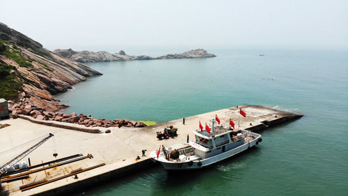 7月16日,“擁軍船”在蘇山島??浚o人機(jī)照片)。新華社記者 王凱 攝