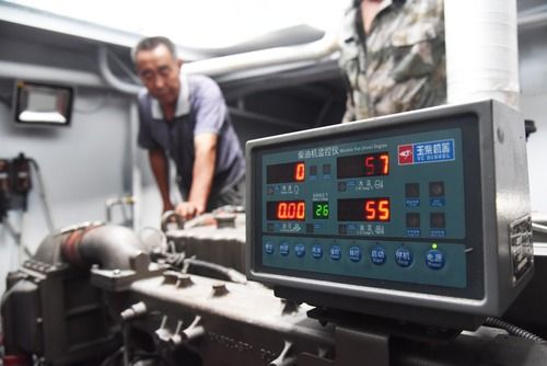 7月16日,“泰叔”錢均堂在檢查“擁軍船”內(nèi)部的機(jī)械安全情況。新華社記者 王凱 攝