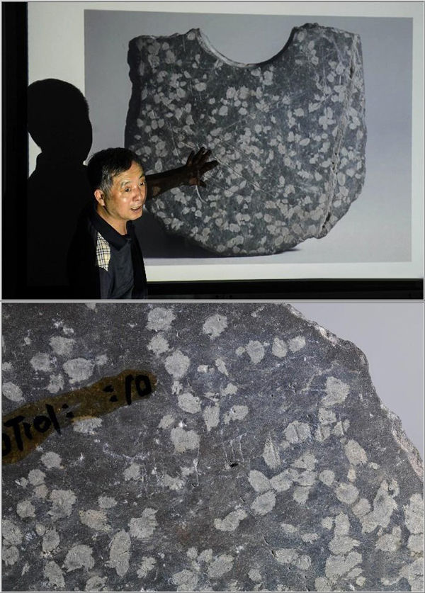 浙江平湖莊橋墳遺址,兩件殘石鉞上發(fā)現(xiàn)的刻畫(huà)符號(hào)經(jīng)考證確認(rèn)是良渚時(shí)期原始文字,距今約5000年 韓傳號(hào) 攝