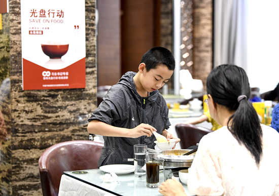 近日,江西省南昌市4萬余家餐館飯店開展“文明就餐,杜絕浪費”主題活動。餐飲行業(yè)通過“光盤族”打折、“半份菜”和“N減1”點菜法等措施,拒絕“舌尖上的浪費”,倡導(dǎo)文明就餐。新華社記者 彭昭之/攝