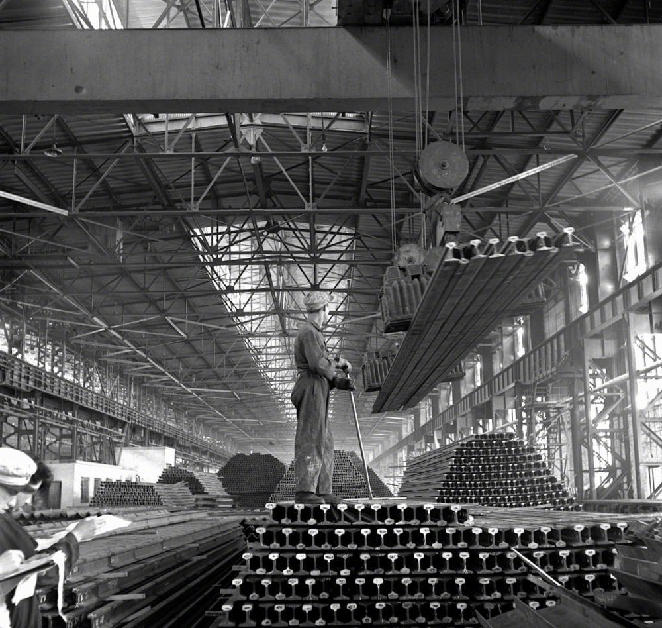 ?“一五”期間,鞍鋼興建的第一座大型軋鋼廠生產(chǎn)能力已迅速超過設(shè)計標(biāo)準(zhǔn)。這是這個廠生產(chǎn)的大批鋼軌(攝于1957年4月)。 ?