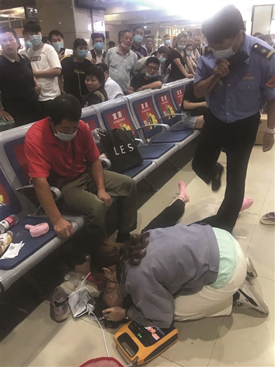 今年4月30日南京苜蓿園地鐵站附近一家健身館內(nèi)一名女子出現(xiàn)心臟驟停,健身館教練、地鐵站值班站長、值班警員等接連對女子進(jìn)行心肺復(fù)蘇,并使用苜蓿園地鐵站設(shè)置的AED對女子進(jìn)行電除顫實(shí)現(xiàn)成功救人。地鐵工作人員告訴記者,公司組織過相應(yīng)的AED操作,當(dāng)時他通過監(jiān)控看到有人拿AED,就跟了過去,發(fā)現(xiàn)有人疑似心臟驟停,就迅速參與了急救的過程。