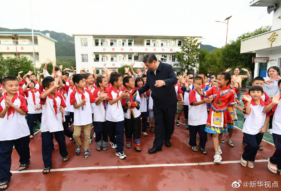 16日下午,正在湖南考察調(diào)研的習(xí)近平總書記來到郴州市汝城縣文明瑤族鄉(xiāng)第一片小學(xué),走進(jìn)四年級(jí)教室,同正在上思政課的同學(xué)們親切交流。同學(xué)們紛紛向習(xí)爺爺分享自己熟悉的長(zhǎng)征故事,習(xí)近平聽了十分高興,連夸“講得好”。他說,作為“半條被子的故事”發(fā)生地,紅色基因要在你們身上得到體現(xiàn)。革命事業(yè)要一代一代傳下去,中華民族偉大復(fù)興將在今天的青少年一代手中實(shí)現(xiàn)。他把同學(xué)們比作“小樹苗”,將來會(huì)長(zhǎng)成中華民族的參天大樹,希望同學(xué)們好好學(xué)習(xí)、天天向上,努力成長(zhǎng)為社會(huì)主義建設(shè)者和接班人。 (文字記者張曉松、朱基釵 攝影記者李學(xué)仁、謝環(huán)馳)?