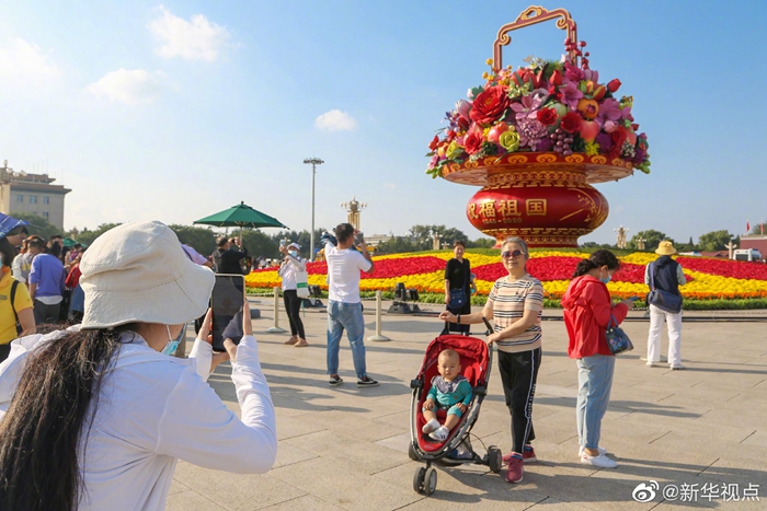9月25日,經(jīng)過(guò)數(shù)日緊張施工,“祝福祖國(guó)”大花籃正式完工,亮相天安門(mén)廣場(chǎng),與市民游客見(jiàn)面,共迎國(guó)慶佳節(jié)。(記者魏夢(mèng)佳)