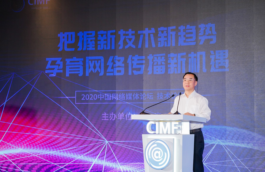 ??? 9月27日,2020中國(guó)網(wǎng)絡(luò)媒體論壇技術(shù)論壇在上海舉行,各界嘉賓圍繞“把握新技術(shù)新趨勢(shì),孕育網(wǎng)絡(luò)傳播新機(jī)遇”這一主題開展探討和交流。圖為工業(yè)和信息化部黨組成員、副部長(zhǎng)劉烈宏致辭。