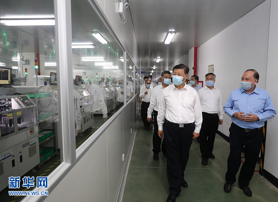在生產(chǎn)車間,習(xí)近平總書記詳細(xì)了解企業(yè)復(fù)工復(fù)產(chǎn)情況。