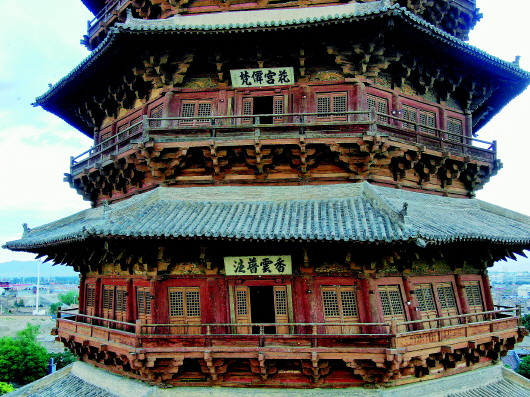 這一修繕工程包括加固木塔臺基,更換損壞的樓板,補強有空洞的主梁,加固劈裂的柱子,補修斗拱,重新制作平座欄桿,整修木塔的門、窗、柵欄,全面維修瓦頂?shù)?,此外還整修了佛宮寺內(nèi)的其他建筑。
