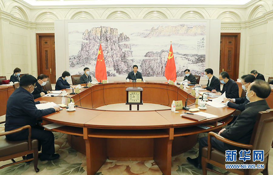 10月30日,中共全國人大常委會(huì)黨組在北京舉行會(huì)議,傳達(dá)學(xué)習(xí)習(xí)近平總書記在黨的十九屆五中全會(huì)上的重要講話和全會(huì)精神。中共中央政治局常委、全國人大常委會(huì)委員長、黨組書記栗戰(zhàn)書主持會(huì)議并講話。 新華社記者 姚大偉 攝