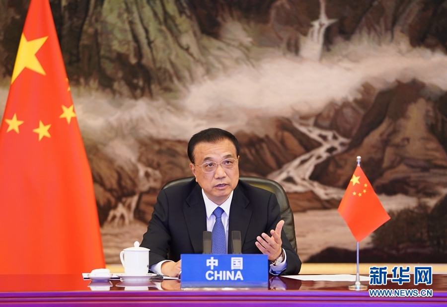 11月14日下午,國(guó)務(wù)院總理李克強(qiáng)在北京人民大會(huì)堂出席第23次東盟與中日韓(10+3)領(lǐng)導(dǎo)人會(huì)議。會(huì)議以視頻形式舉行。新華社記者 張領(lǐng) 攝