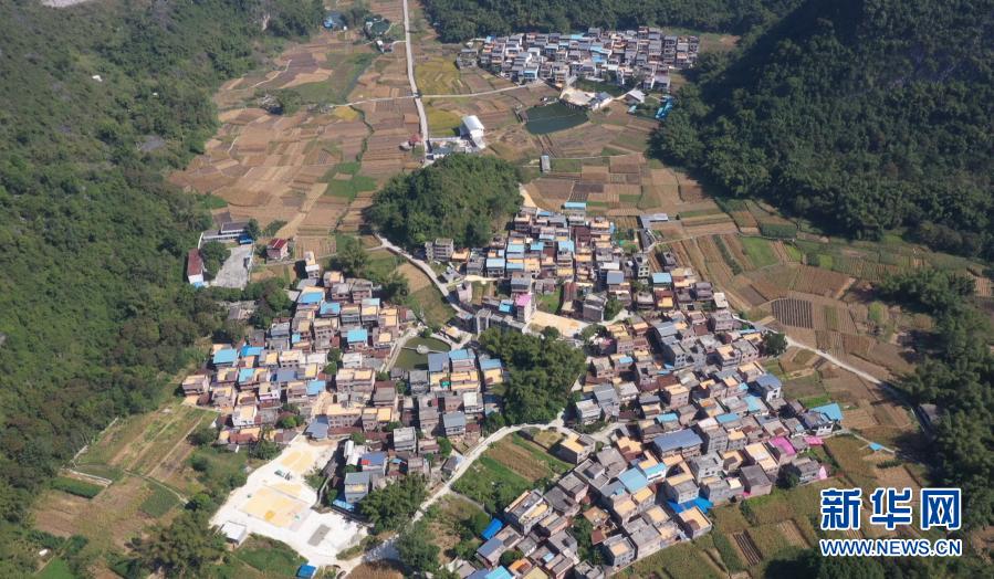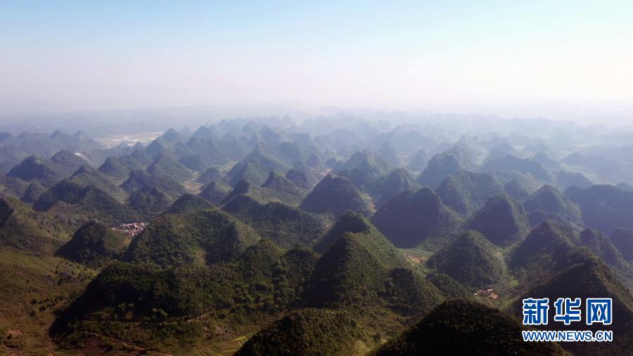 這是11月11日拍攝的廣西隆安縣群山(無人機照片)。新華社記者 楊馳 攝