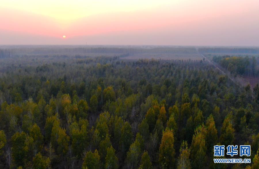 這是11月6日在河南省商丘市民權縣拍攝的民權林場(無人機照片)。新華社記者 郝源 攝