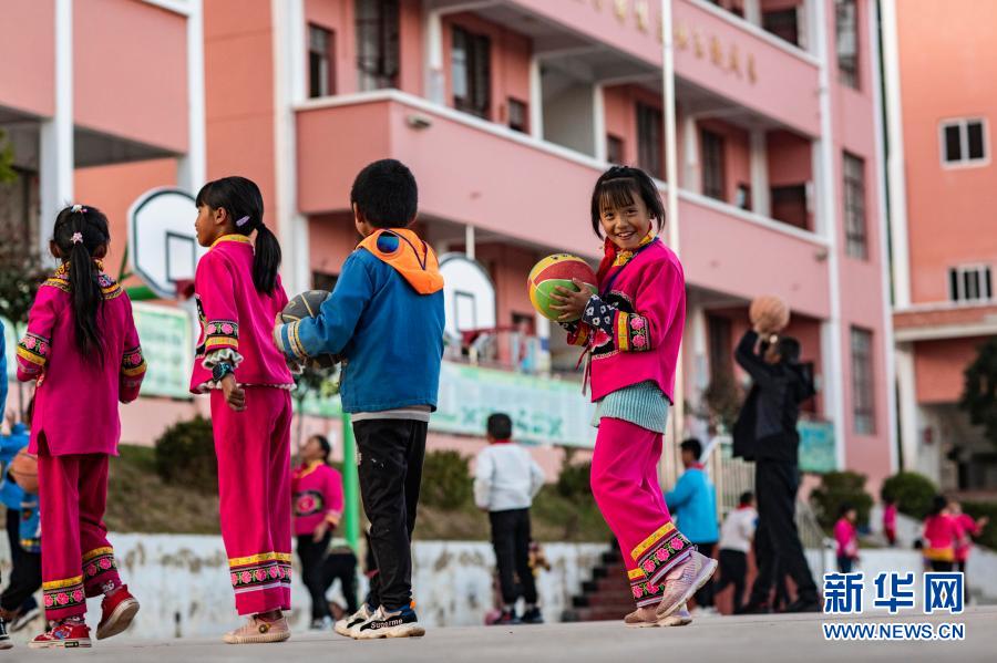 云南省楚雄市子午鎮(zhèn)挖銅村挖銅小學的孩子在操場玩耍(11月30日攝)。新華社記者 江文耀 攝