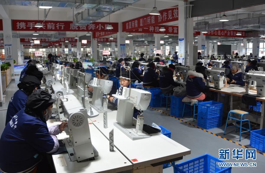 馬忠芳在廈琳鞋業(yè)產(chǎn)業(yè)園扶貧車間內(nèi)工作(12月1日攝)。新華社記者 顏之宏 攝