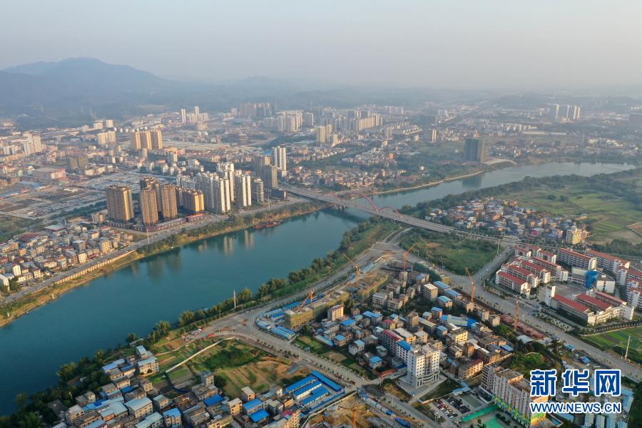 廣西百色市城區(qū)新貌(2018年11月28日攝,無人機照片)。新華社記者 周華 攝
