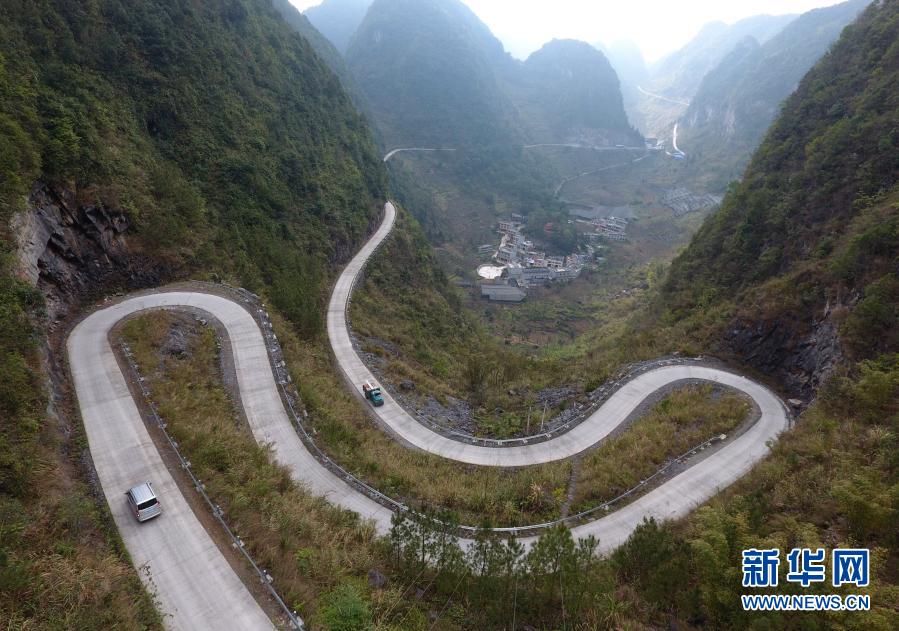 廣西百色市凌云縣泗城鎮(zhèn)隴雅村境內的道路(2017年3月12日攝,無人機照片)。新華社記者 陸波岸 攝