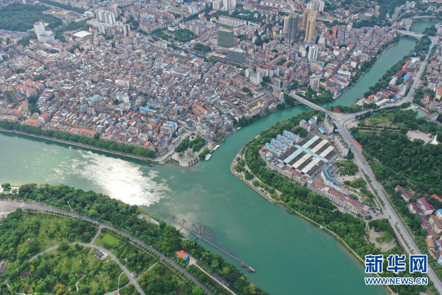 廣西百色市城區(qū)新貌(2019年8月29日攝,無人機照片)。新華社記者 曹祎銘 攝