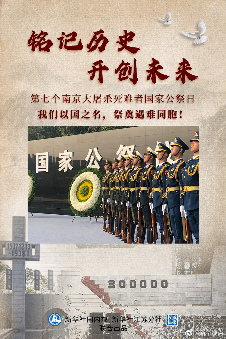 今天是第七個南京大屠殺死難者國家公祭日,讓我們銘記83年前的12月13日,沉痛緬懷30萬遇難同胞,警鐘長鳴,珍愛和平?。ㄓ浾撸菏Y芳、李響、邱冰清 海報(bào)設(shè)計(jì):張惠慧) ????