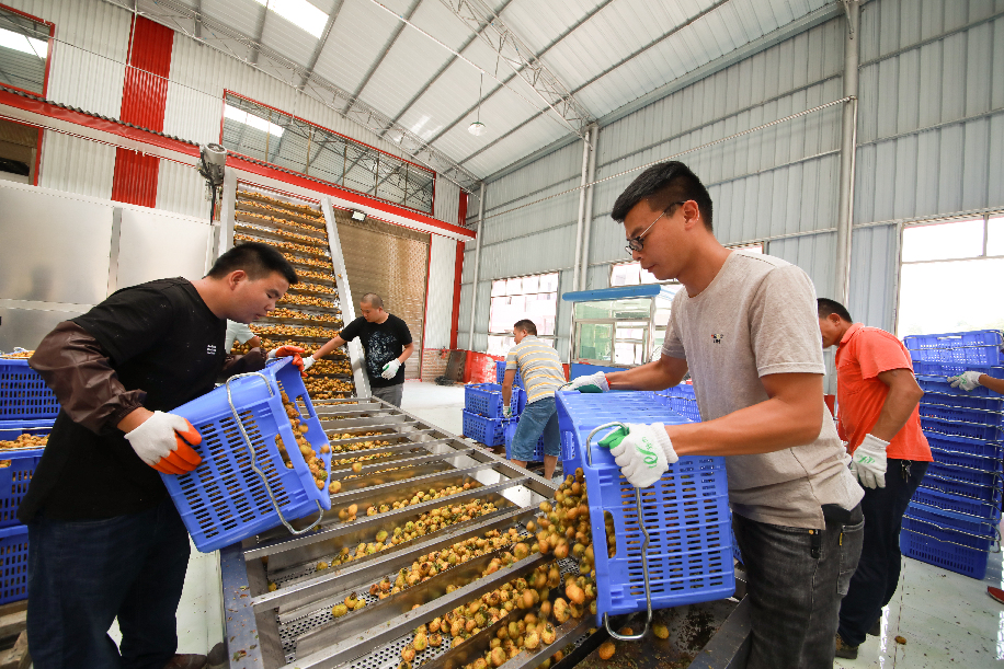 ?????貴州省黔南州貴定縣刺梨加工廠里,工人正忙著進行刺梨加工。石銀超 攝