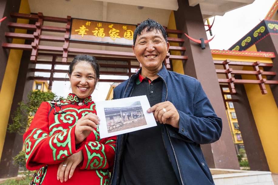 ????云南省麗江市寧蒗縣彝族群眾沙阿布夫婦受益于易地扶貧,喜遷“幸福家園”。孫權(quán)偉 攝