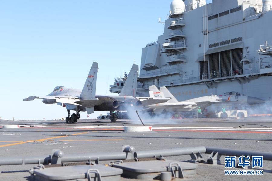 飛行學(xué)員駕駛殲-15艦載戰(zhàn)斗機(jī)在遼寧艦成功實施阻攔著艦(資料照片)。新華社發(fā)(楊皓 攝)