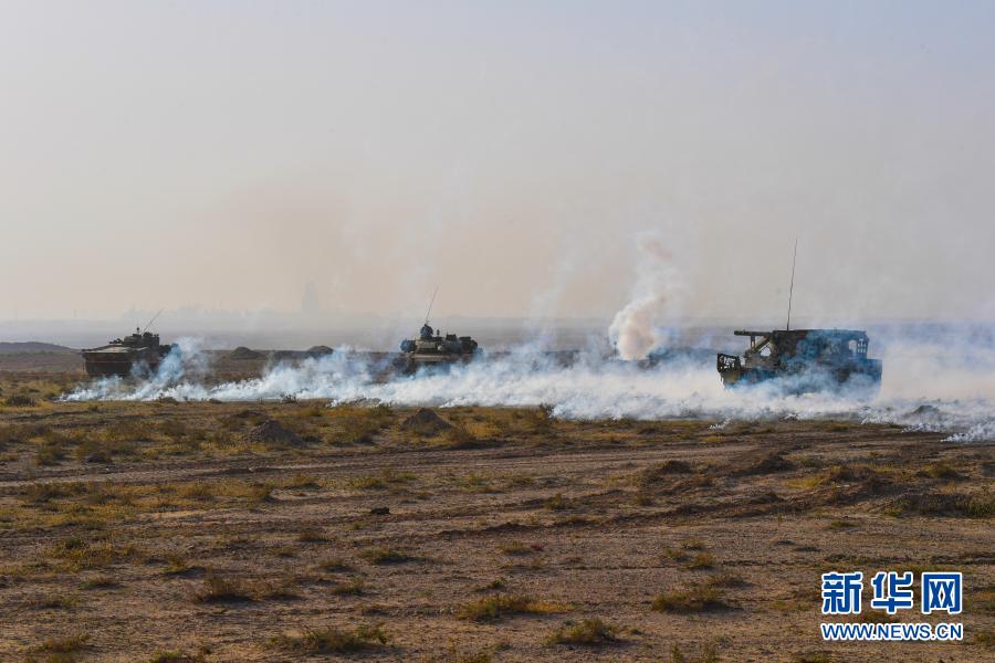東部戰(zhàn)區(qū)陸軍第73集團(tuán)軍某旅紅四連官兵在大漠戈壁參加紅藍(lán)對抗演練(10月9日攝)。新華社發(fā)(劉志勇 攝)