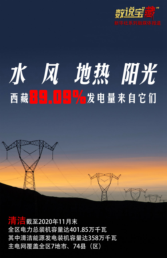 西藏自治區(qū)發(fā)展改革委的數(shù)據(jù)顯示,近年來西藏發(fā)電能力大幅增長,截至2020年11月末,全區(qū)電力總裝機容量達401.85萬千瓦,其中清潔能源板塊增長迅速,同期水電、風電、地熱以及太陽能光伏發(fā)電裝機容量達358萬千瓦,清潔能源在發(fā)電裝機容量中的占比達89.09%。