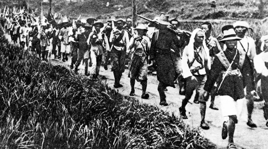 反“圍剿”中的紅軍在行軍 新華社圖片