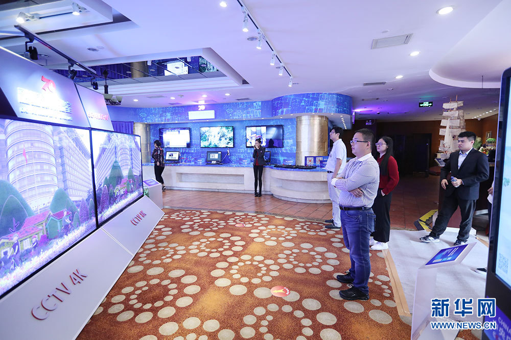 9月24日,慶祝中華人民共和國成立70周年活動新聞中心在北京梅地亞中心二層新聞發(fā)布廳舉辦第一場新聞發(fā)布會。圖為新聞中心設(shè)立的融媒體體驗室。新華網(wǎng) 雷東瑞 攝