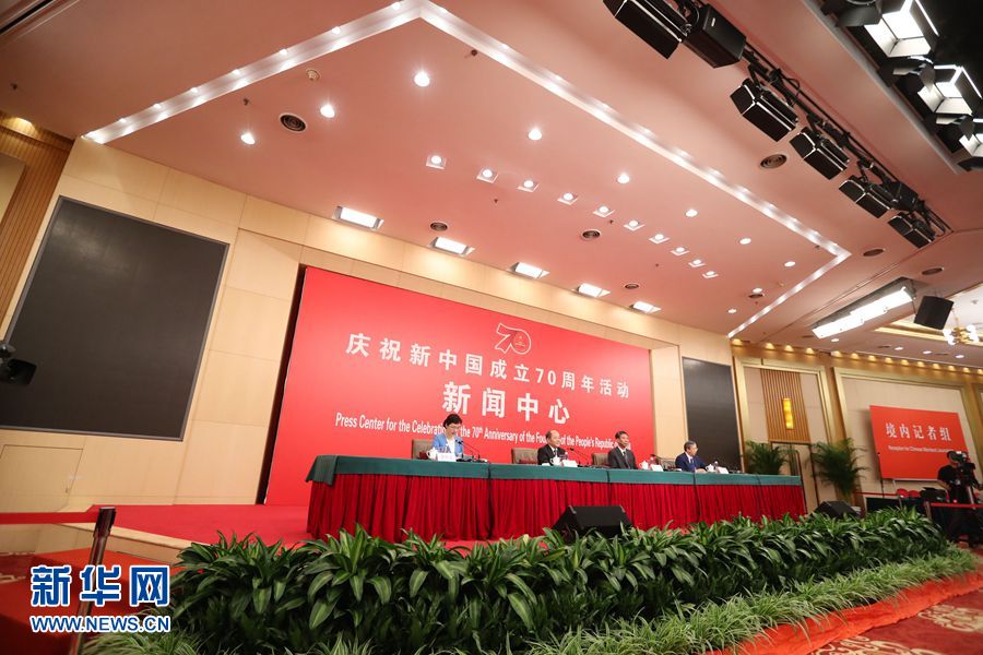 9月24日,慶祝中華人民共和國成立70周年活動新聞中心在北京梅地亞中心二層新聞發(fā)布廳舉辦第一場新聞發(fā)布會。圖為新聞發(fā)布會現(xiàn)場。新華網記者 陳競超 攝