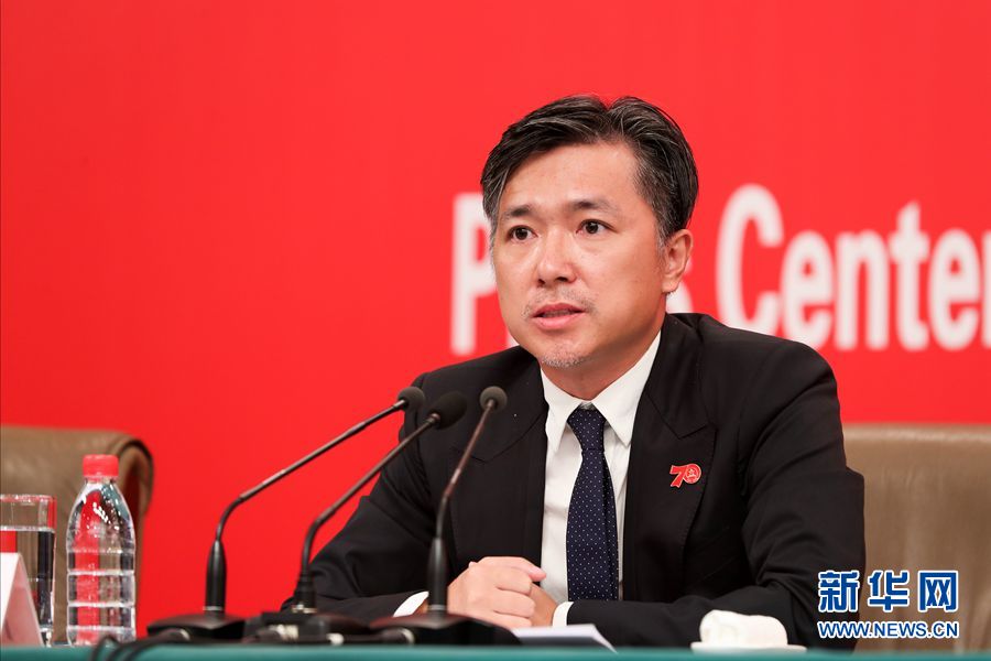 9月25日,慶祝中華人民共和國(guó)成立70周年活動(dòng)新聞中心在北京梅地亞中心二層新聞發(fā)布廳舉辦第二場(chǎng)專題集體采訪活動(dòng)。圖為群眾游行總導(dǎo)演、北京師范大學(xué)藝術(shù)與傳媒學(xué)院副院長(zhǎng)肖向榮介紹相關(guān)情況。新華網(wǎng)記者 焦鵬 攝