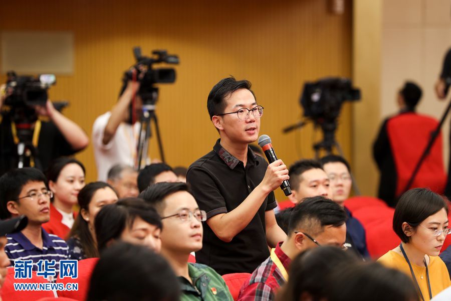 9月25日,慶祝中華人民共和國(guó)成立70周年活動(dòng)新聞中心在北京梅地亞中心二層新聞發(fā)布廳舉辦第二場(chǎng)專(zhuān)題集體采訪(fǎng)活動(dòng)。圖為媒體記者提問(wèn)。新華網(wǎng)記者 焦鵬 攝