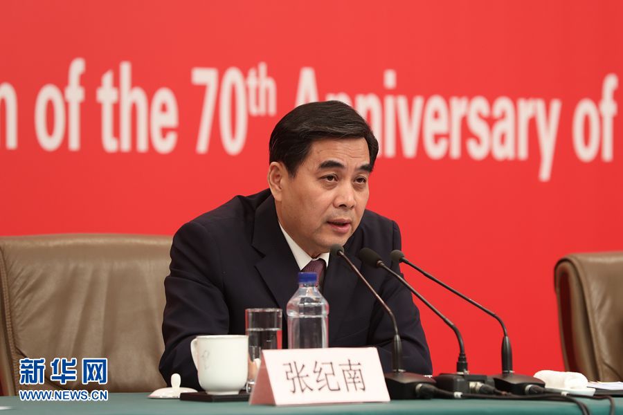 9月26日,慶祝中華人民共和國成立70周年活動(dòng)新聞中心在北京梅地亞中心二層新聞發(fā)布廳舉辦第二場(chǎng)新聞發(fā)布會(huì)。圖為人力資源和社會(huì)保障部部長張紀(jì)南介紹相關(guān)情況。新華網(wǎng)記者 郭小天 攝