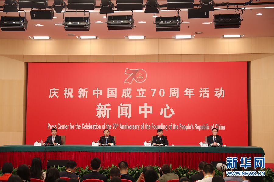 9月29日,慶祝中華人民共和國成立70周年活動新聞中心在北京梅地亞中心二層新聞發(fā)布廳舉辦第四場新聞發(fā)布會。圖為新聞發(fā)布會現(xiàn)場。新華網(wǎng)記者 焦鵬 攝