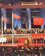雄壯的中華人民共和國國歌在人民大會堂響起。2011年7月1日上午10時,慶祝中國共產(chǎn)黨成立90周年大會在這里隆重舉行。走過90年風(fēng)雨征程,中國共產(chǎn)黨引領(lǐng)社會主義中國站在新的歷史起點(diǎn),擔(dān)負(fù)起新的歷史使命。