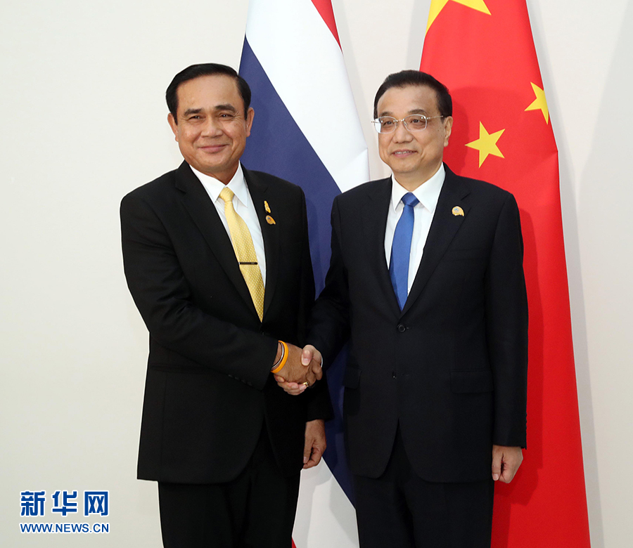 李克強表示,中泰一家親深入人心,兩國關系發(fā)展勢頭很好,各領域合作持續(xù)推進。上個月,中泰鐵路項目一期工程動工,標志著中泰合作邁上新臺階。希望雙方再接再厲,推動項目順利實施,并帶動中泰其他領域合作向前邁進。中方愿加強“一帶一路”倡議同泰國“東部經濟走廊”等發(fā)展戰(zhàn)略對接,提升中泰貿易便利化水平,加強經貿、旅游、科技等領域合作,更好實現(xiàn)互利共贏。