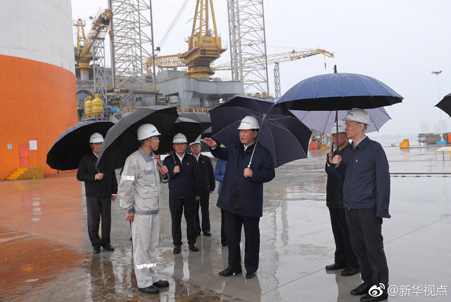 6月13日下午,習(xí)近平冒雨來到中集來福士海洋工程有限公司煙臺基地?!八{鯨1號”鉆井平臺巍峨佇立、“泰山”龍門吊高聳入云,習(xí)近平撐著傘邊走邊看,詳細了解企業(yè)走自主創(chuàng)新發(fā)展之路、開展高端海洋工程設(shè)備自主設(shè)計研發(fā)制造情況。聽說“藍鯨1號”去年創(chuàng)造了可燃冰開采時間和產(chǎn)量兩項世界紀錄,習(xí)近平鼓勵他們繼續(xù)努力??倳浲F(xiàn)場的工人們一一握手,他說,基礎(chǔ)的、核心的東西是討不來買不來的,要靠我們自力更生、自主創(chuàng)新來實現(xiàn)。我看你們有這個信心,希望你們迎難而上、再接再厲。(記者張曉松、謝環(huán)馳)