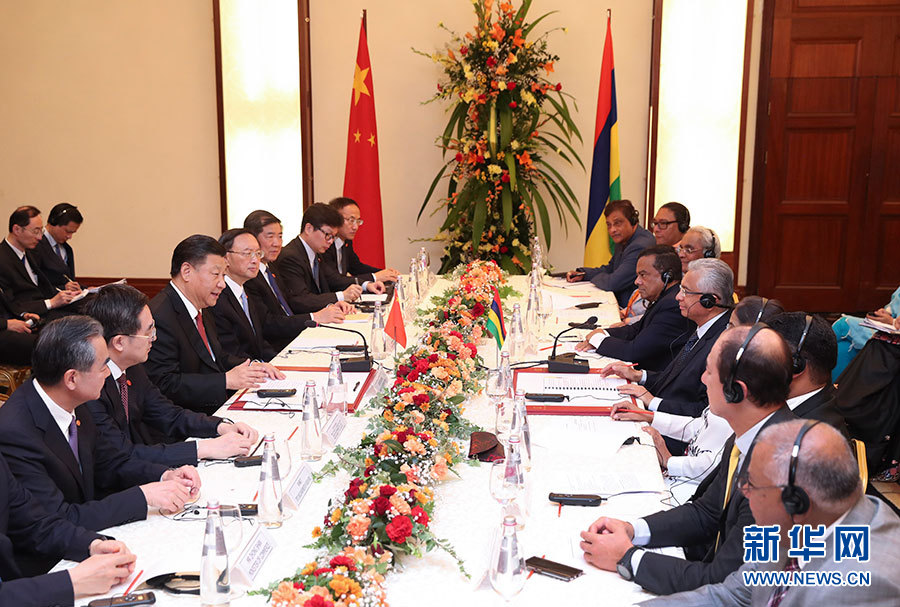 習(xí)近平強(qiáng)調(diào),中毛都是發(fā)展中國家,有著相似的發(fā)展經(jīng)歷和發(fā)展任務(wù)。當(dāng)前,中毛關(guān)系發(fā)展面臨新的重要機(jī)遇。我們要保持高層交往勢頭,加強(qiáng)政府部門、立法機(jī)構(gòu)、地方等往來,繼續(xù)在涉及彼此核心利益和重大關(guān)切問題上相互理解和支持。要挖掘務(wù)實(shí)合作潛力,提高雙方貿(mào)易和投資自由化便利化水平,早日商簽中毛自由貿(mào)易協(xié)定,發(fā)揮毛里求斯參與共建“一帶一路”的獨(dú)特區(qū)位優(yōu)勢,加強(qiáng)溝通對接,深化廣泛領(lǐng)域合作。要加強(qiáng)人文交流,促進(jìn)相互了解。中方愿同毛方加強(qiáng)氣候變化南南合作,密切在國際事務(wù)中協(xié)作,維護(hù)發(fā)展中國家共同利益。