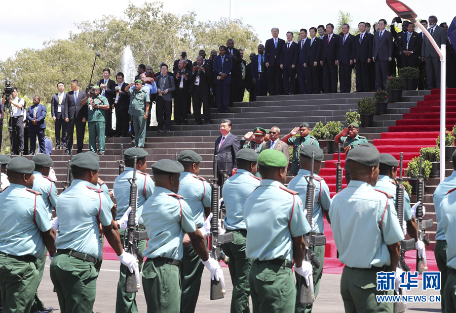 11月16日,國家主席習近平在莫爾茲比港會見巴布亞新幾內(nèi)亞總督達達埃。會見開始前,達達埃在議會大廈前廣場為習近平舉行隆重歡迎儀式。新華社記者 丁林 攝