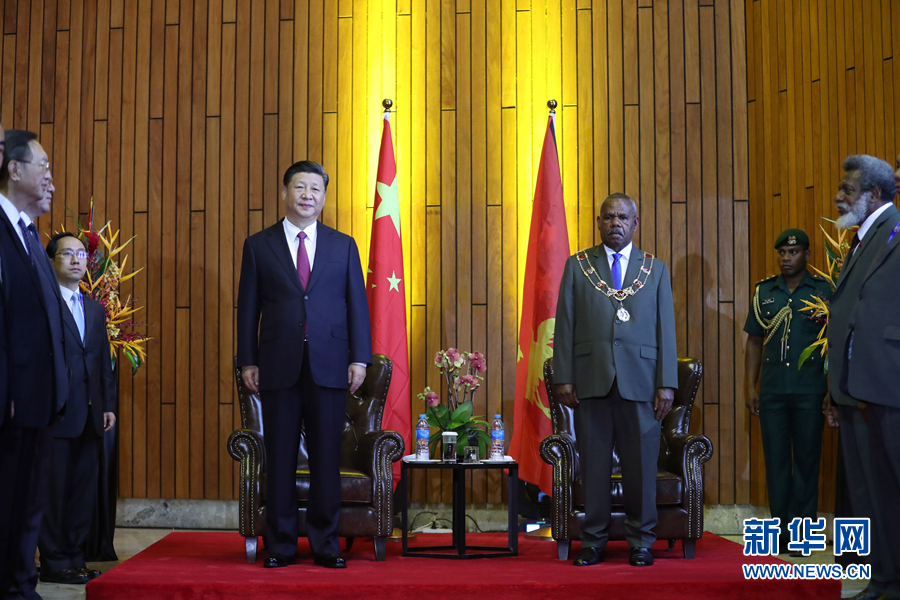 11月16日,國家主席習近平在莫爾茲比港會見巴布亞新幾內亞總督達達埃。新華社記者 丁林 攝
